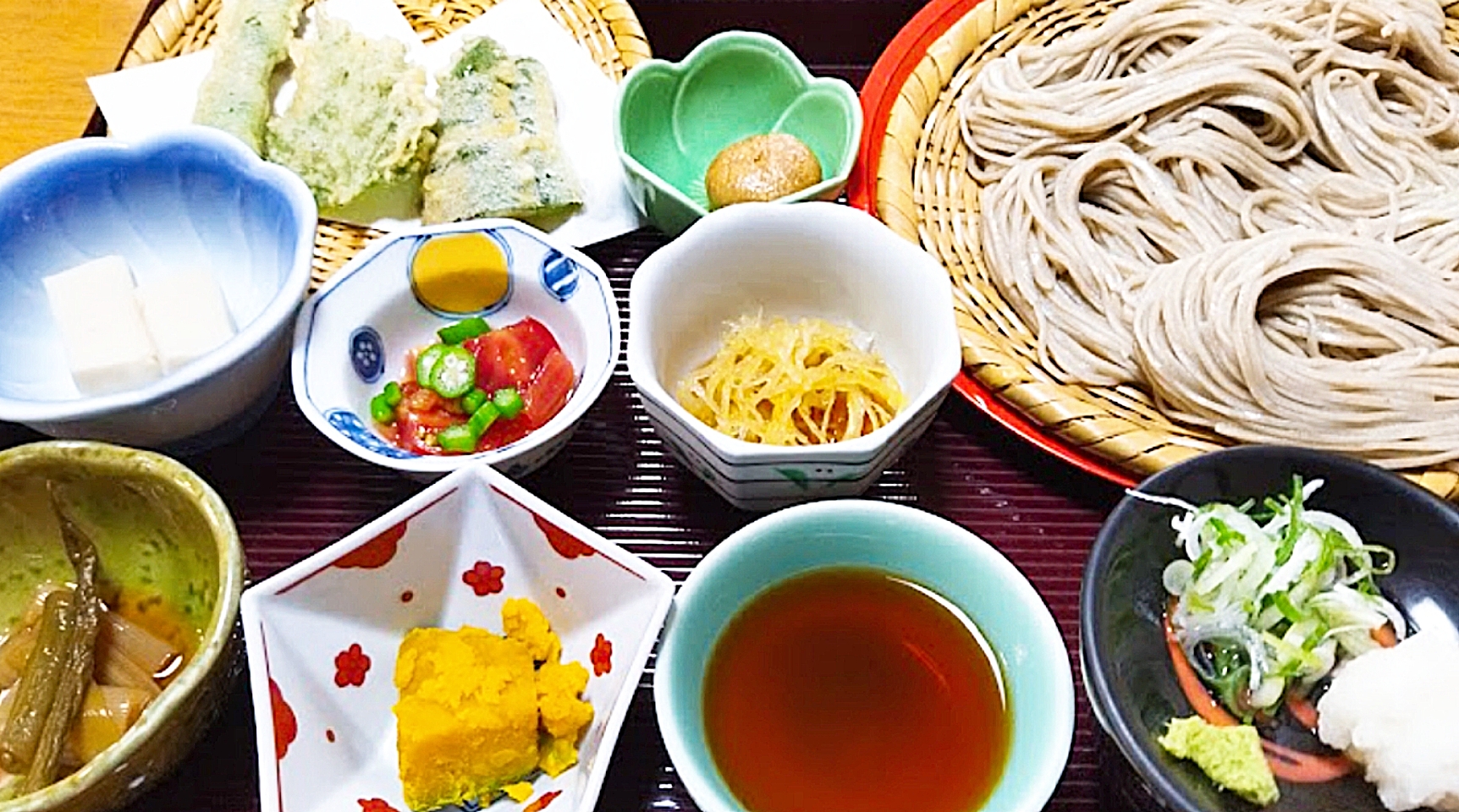 TVでもご紹介いただいた人気メニューです。小鉢5品、野菜天ぷら3種、そばだんごがセットになっており、お蕎麦はざる(冷)かかけ(温)をお選びいただけます。旬な高原野菜を豊富に使用した小鉢は、すべて当店の女将自家製で、お蕎麦との相性もぴったりです。小鉢の内容は、仕入れ状況によって毎回変わりますので、一期一会の出会いをお楽しみください。