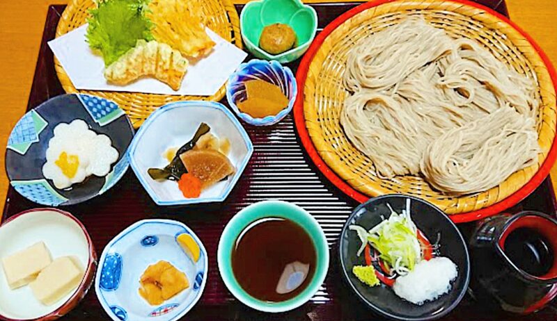 また、そばつゆやかけそばのつゆは、戸隠のお蕎麦の香りが引き立つ伝統の風味があり、絶妙な香りのバランスや濃度が調節されております。小鉢づくりは、そばつゆを作る際に使用するものと同じ種類のだしを用いる場合も多く、一品ごとに違うおいしさがあるけれど全体的にまとまっていて相性が良い内容になっているのはこのためです。素朴で優しい素材の小鉢と、そばつゆがおいしさを引き立たせている主役のお蕎麦、そこに当店自慢の天ぷらがセットになった「天ざるそば」は皆様にご好評いただいております。是非、食後の蕎麦湯まで、こだわりのそばつゆと割って、締めとして風味をお楽しみください。