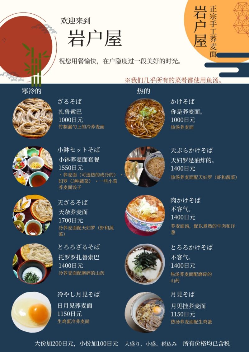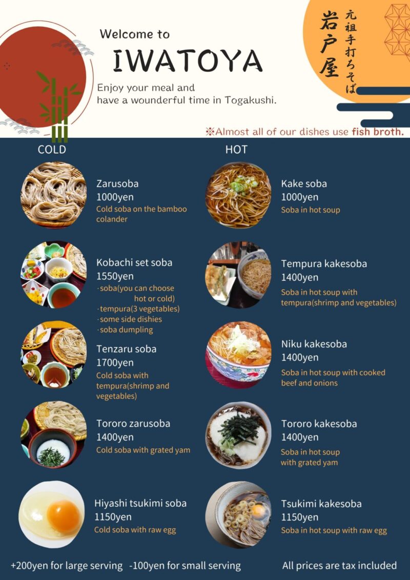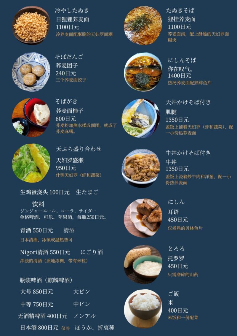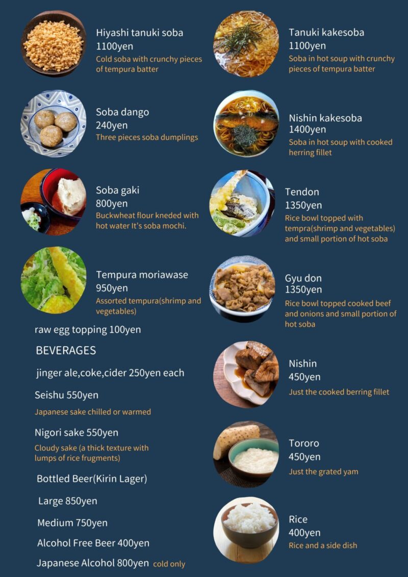*すべてのお蕎麦で量が選べます(小盛3ぼっち・大盛7ぼっち)。それぞれ小盛100円減、大盛200円増となります。
